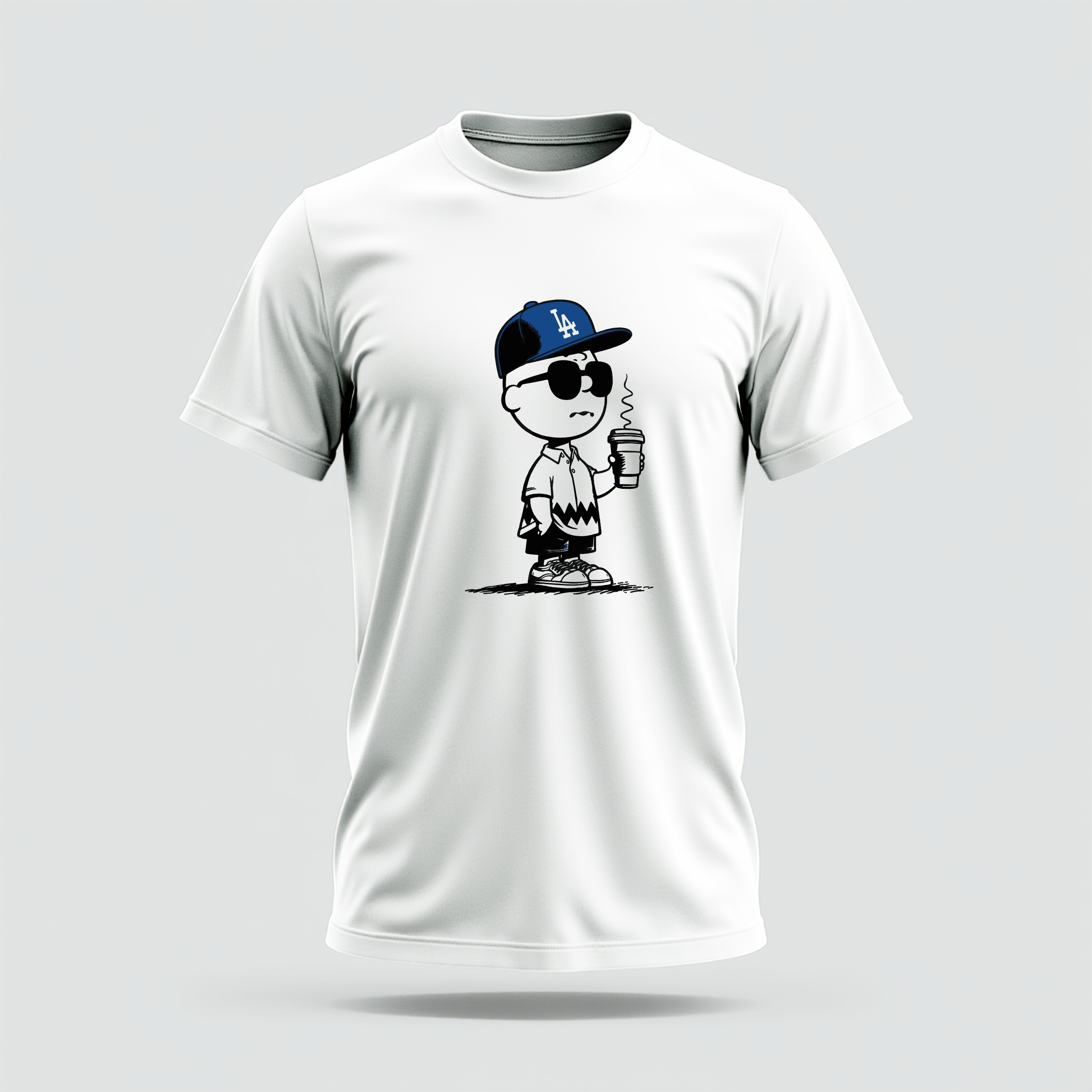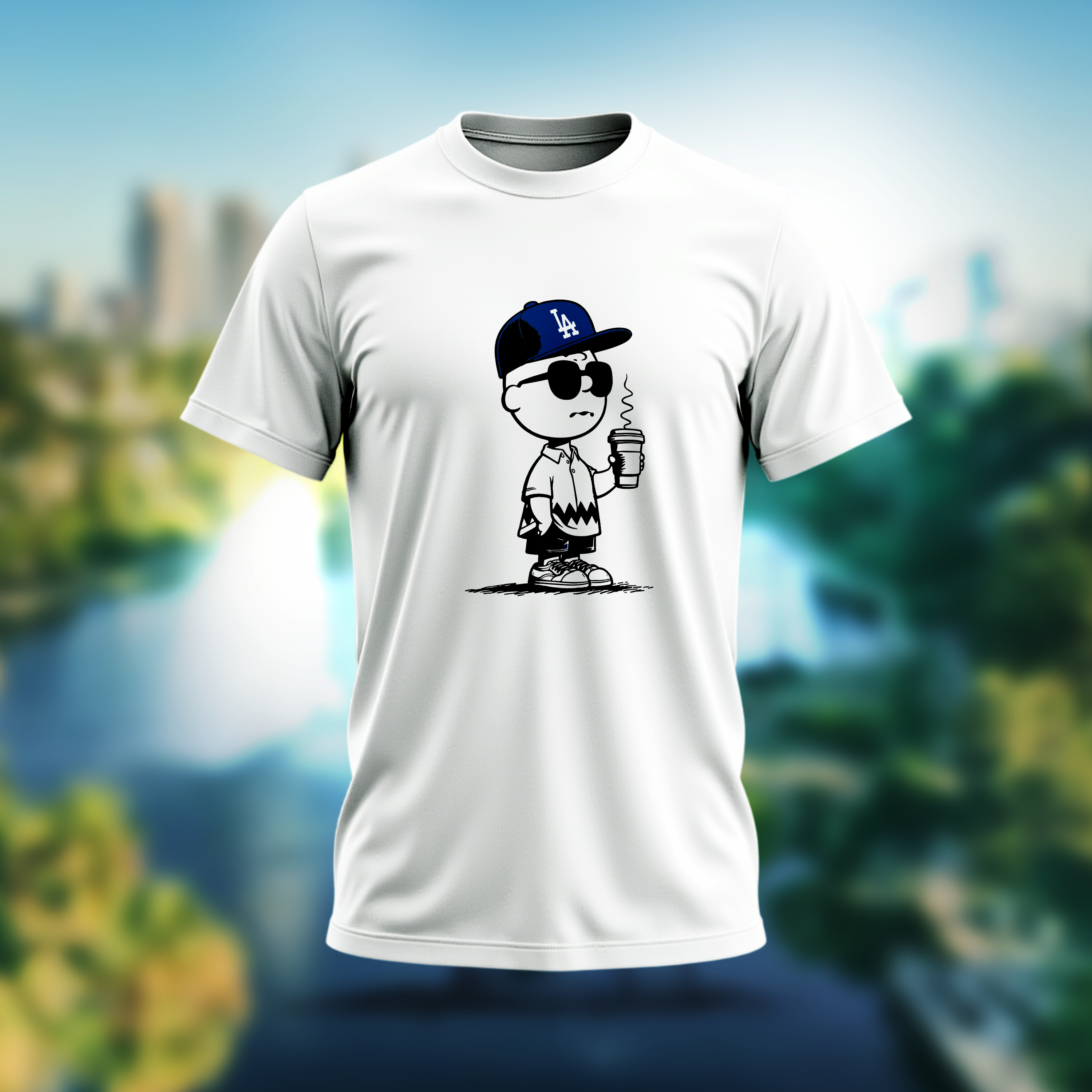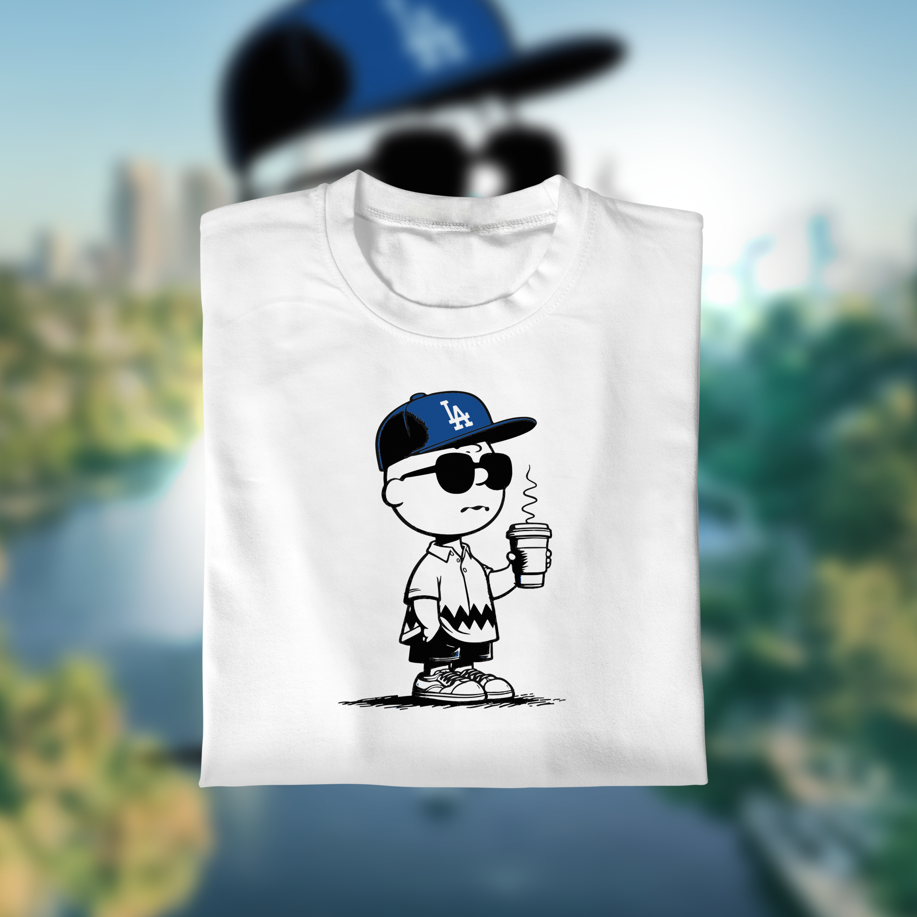 Featuring a beloved cartoon character in dark shades and a confident attitude, this design perfectly captures that essential "LA Grind Time" morning energy. With a steaming cup of coffee in hand, this tee is a must-have for anyone who takes their java seriously.