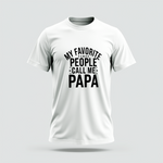 This black t-shirt features a heartwarming and fun graphic for fathers and grandfathers. The text "MY FAVORITE PEOPLE CALL ME PAPA" is printed in a clean, white, and slightly distressed font. This design is a simple and touching way to show paternal pride.